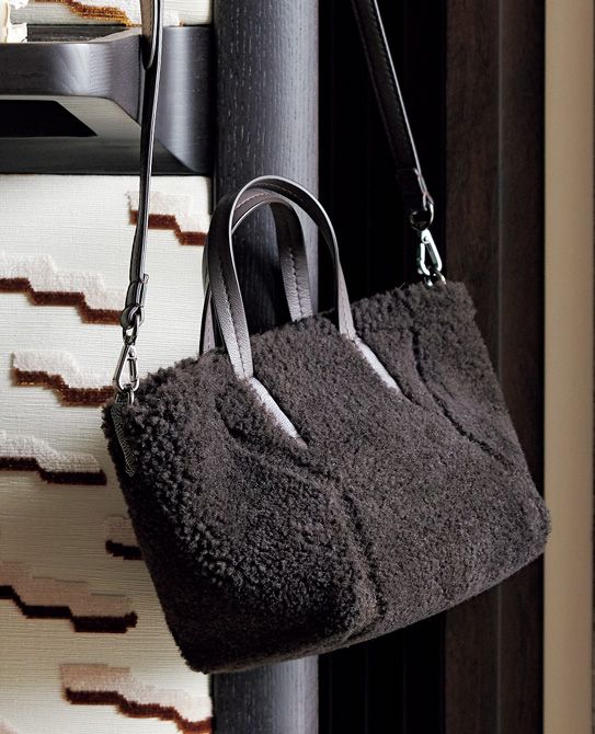 柔らかな質感で魅せる深みのあるダークブラウンコンパクトでありながら、ジオメトリックなパネル構造と太めのステッチが存在感を放つ「BCDuo」にシアリング素材が仲間入り。ストラップの接続部分には金属の装飾“モニーレ”が施されており、細部にもメゾンのアイデンティティが宿ります。2025年9月から展開予定。「BC Duo」ミニ(縦14×横25×マチ10センチ)44万円/ブルネロ クチネリ(ブルネロ クチネリ ジャパン)
