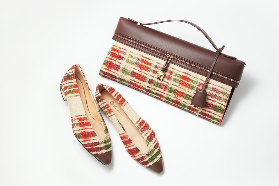バッグ「エクストラ・クラッチ」(縦17×横36×マチ3センチ)61万6000円 靴「レベッカ・バレエ・フラット」(ヒール高2センチ)14万9600円/ともにロロ・ピアーナ
