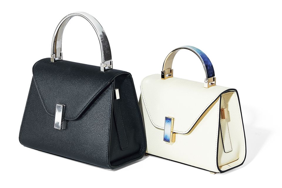 バッグ「ISIDE ARITA」右(縦14×横19.5×マチ9.5センチ、ホワイト)63万8000円 同左(縦16×横22×マチ12センチ、ブラック)74万8000円/ともにヴァレクストラ