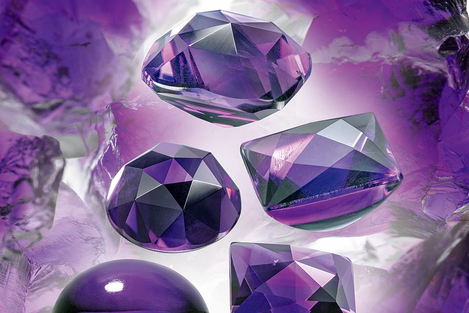 アメシストは水晶(クォーツ)の一種で、和名は紫水晶。モース硬度7はトルマリンやガーネットと同程度。2月の誕生石としても知られている。