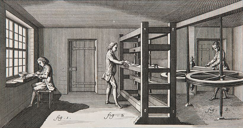 A.それまでは精度の高い研磨技術が存在しなかったためです。回転する研磨盤に宝石を当てて研磨する技術がいつ発明されたかは定かではありませんが、18世紀後半に刊行された『フランス百科全書』には、研磨盤を用いてダイヤモンドを研磨する様子が描かれています。