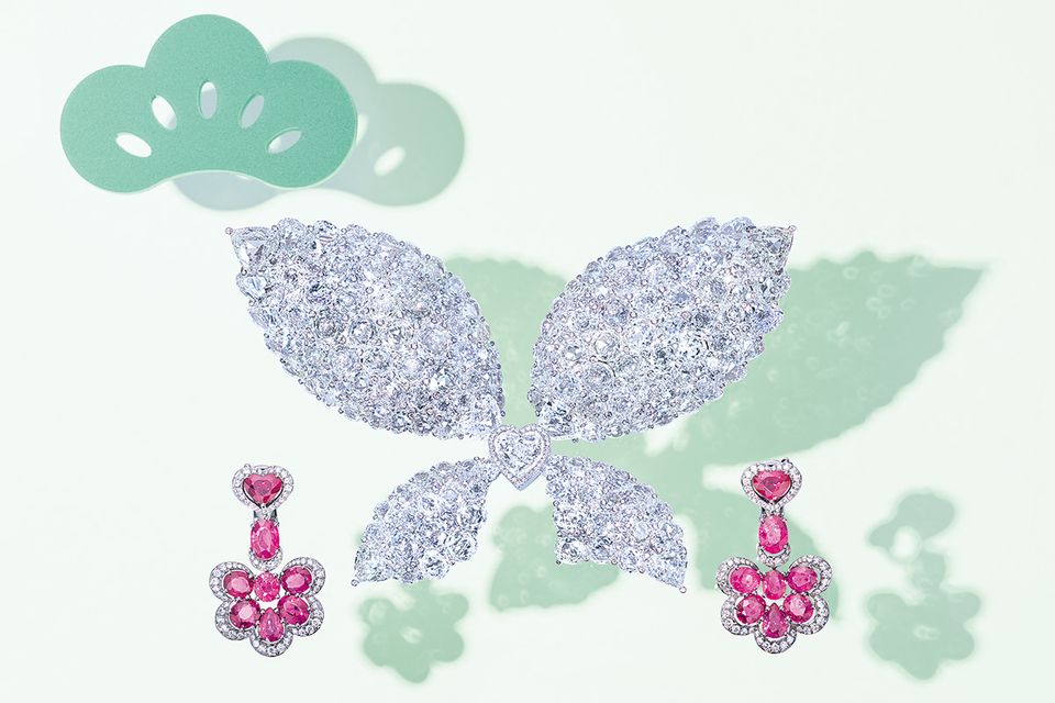ブローチ(エシカルWG×ダイヤモンド計113.89ct)1億7564万8000円 イヤークリップ(Ti×ルビー計14.22ct×ダイヤモンド計1.24ct)2552万円〈ともに参考価格〉/ともにショパール(ショパール ジャパン プレス)