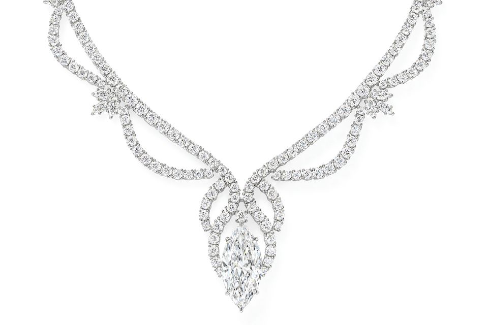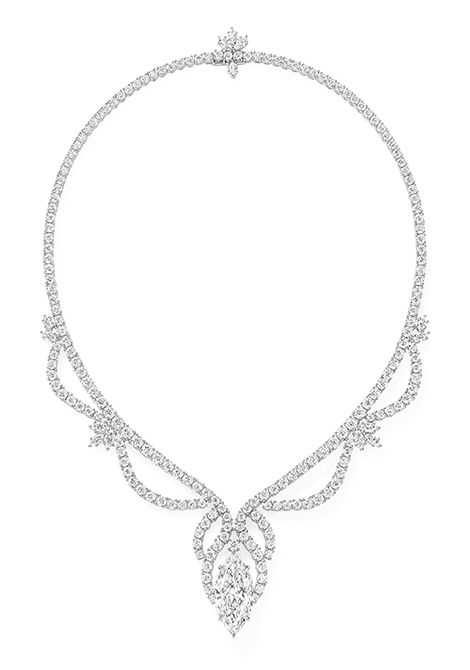 「レガシー・コレクション」より、センター約10.72ctのマーキースカットダイヤモンドを配したネックレス(Pt×ダイヤモンド)ともに参考商品/ハリー・ウィンストン(ハリー・ウィンストン クライアントインフォメーション)