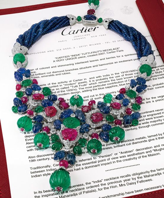 「色彩豊かな宝石を散りばめたカルティエのトゥッティフルッティ“インディア”のような、歴史ある老舗ジュエラーの名作といわれるユニークピースは、ジュエリーオークションでも高い評価がつきます。こちらは2000年代初期のカスタムメイドによる一点もので、約14億円で落札されました」(ヴィッキー・セックさん)。