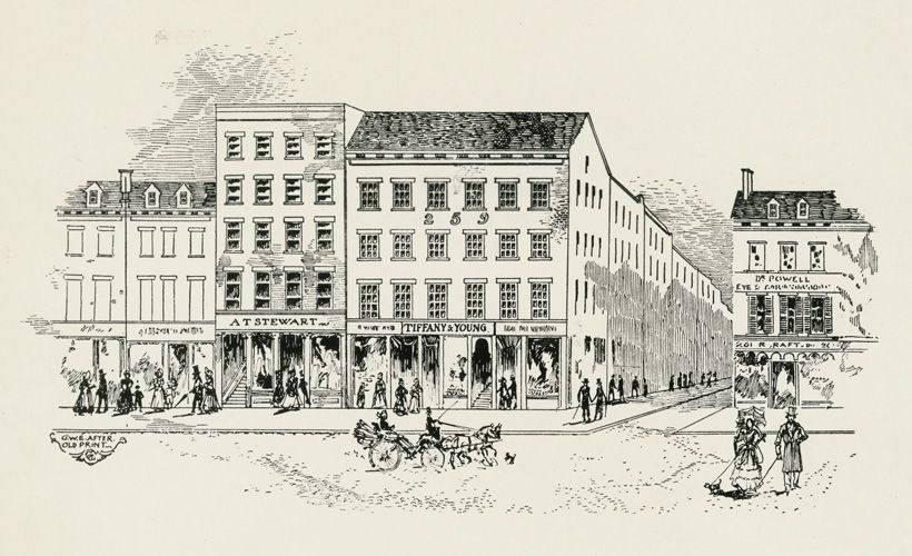 チャールズ・ルイス・ティファニーとジョン・バーネット・ヤングがニューヨーク市ブロードウェイ259番地に文房具と装飾品を取り扱う「ティファニー アンド ヤング」をオープン。初日の売り上げは4.98ドルだった。
