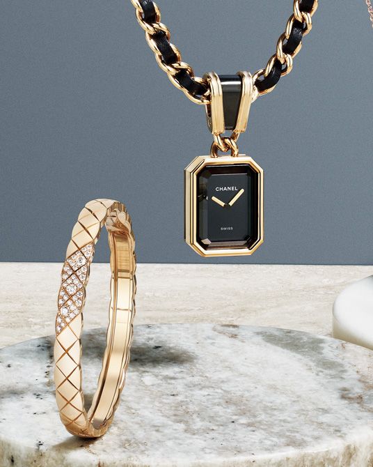CHANEL(シャネル)タイムレスな美を放つシャネルの時計「プルミエール」に新作がお目見え。ブラックレザーを編み込んだチェーンネックレスとのコンビネーションが新鮮です。キルティングモチーフを刻んだ煌めくブレスレットと。
