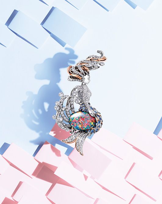 躍動感のある輝きと色彩物語の世界へ誘われて伝説のデザイナー、ジャン・シュランバージェが愛した海の世界を、新たに再解釈。揺らめく髪や流麗な尾ひれの有機的な造形とともに、神秘的な海の物語を綴るのは「マーメイド」。海中を舞う人魚を描いたブローチに、ブラックオパールが添えられました。“革新性” や “自信” の意味を持つ、さまざまな色彩を湛えるブラックオパールが、まだ見ぬ新たな可能性を感じさせてくれます。