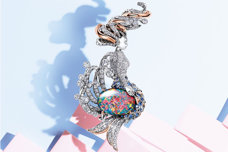 「ブルー ブック 2025:シー オブ ワンダー」より、ブローチ「マーメイド」(Pt×RG×ダイヤモンド計8.85ct×ブラックオパール10.84ct×サファイア計3.9ct)〈参考商品〉/ティファニー(ティファニー・アンド・カンパニー・ジャパン・インク)