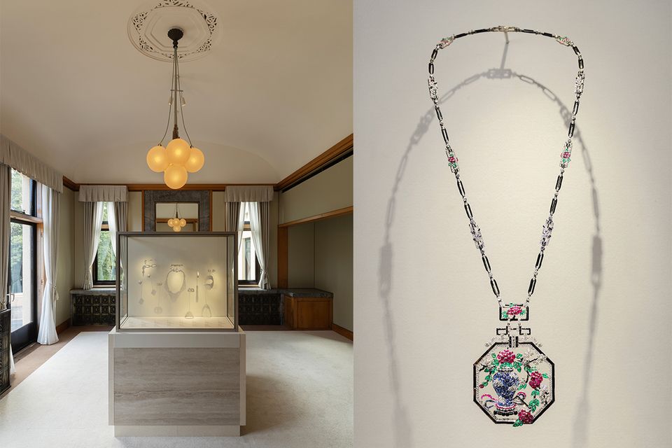 1925年にフランス・パリで『現代装飾美術・産業美術国際博覧会』(通称アール・デコ博覧会)が開催されてから100周年にあたる2025年にスタートした『永遠なる瞬間 ヴァン クリーフ&アーペル ─ハイジュエリーが語るアール・デコ』。アール・デコ期のヴァン クリーフ&アーペルのハイジュエリー、時計、工芸品などが一堂に会した東京都庭園美術館は、1933年に朝香宮邸として建てられた建物です。