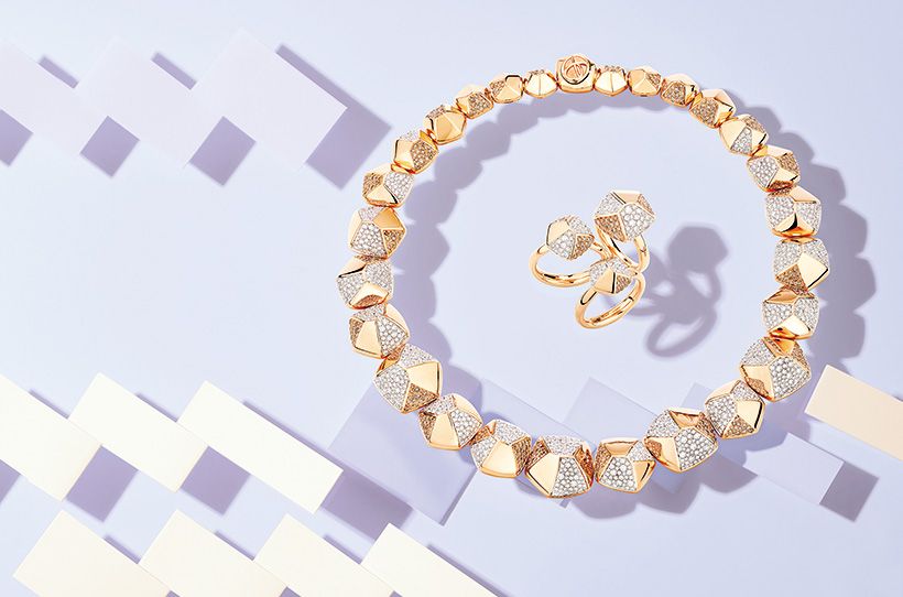 「ペンタゴニ」ネックレス(RG×ダイヤモンド計13.88ct)2096万6000円 リングセット(RG×ダイヤモンド計1.62ct)337万7000円/ともにポメラート(ポメラート クライアントサービス)
