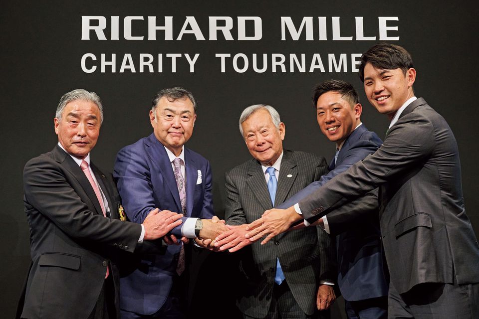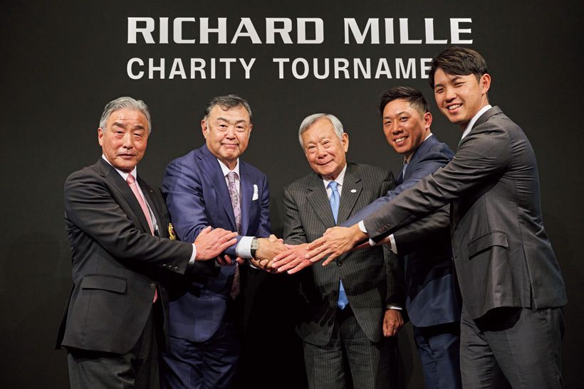 これまで軽井沢など各地のゴルフ場でゴルフを通じたチャリティイベントを行ってきたリシャール・ミル。イベントには、リシャール・ミルファミリーであるプロゴルファーたちも参加してきた。左から・青木瀬令奈選手、宮里優作選手、成田美寿々選手。